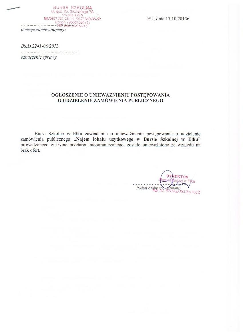 Milena Cichorek) - Dodanie załącznika [zawiadomienie_o_uniewaznieniu_przetargu__rozbiorka_wezla_cieplnego_zl okalizowanego_w_bursie_szkolnej_w_elku_ul_sikorskiego_5a.jpg] do dokumentu. (Dokument opublikowany)